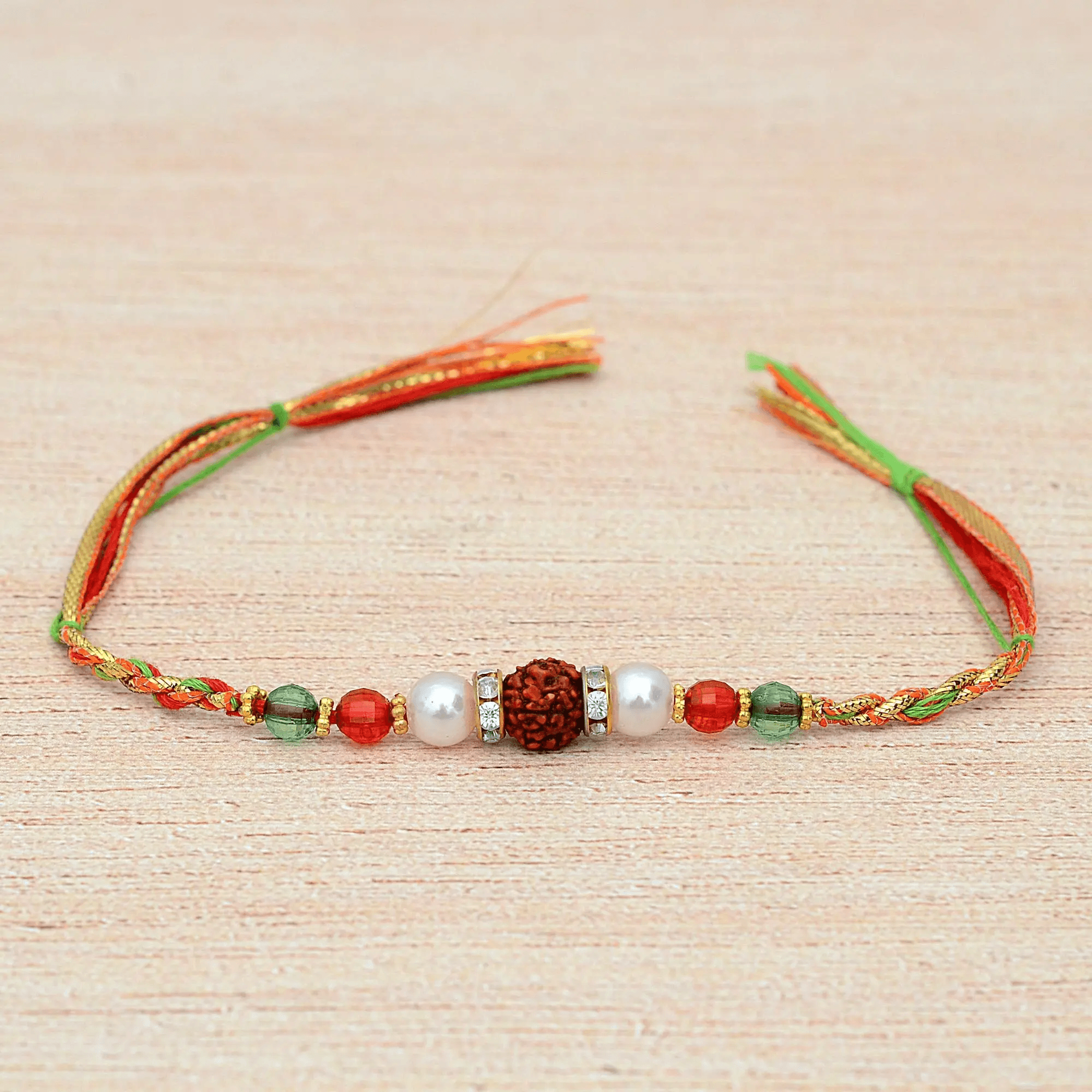 Exclusive Designer Rakhi with Golden Dial, Diamonds & Pearls