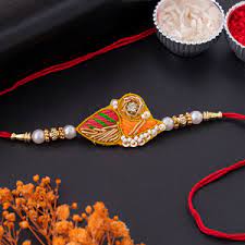 Attractive Bhaiya Bhabhi Rakhi Set Embellished with Zari and Beads